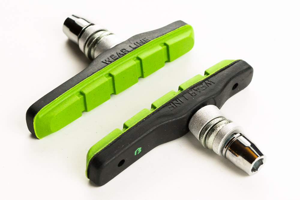 Fékpofa BIKEFUN MTB 72 mm menetes fekete/zöld - MTB-945V-BKGRN