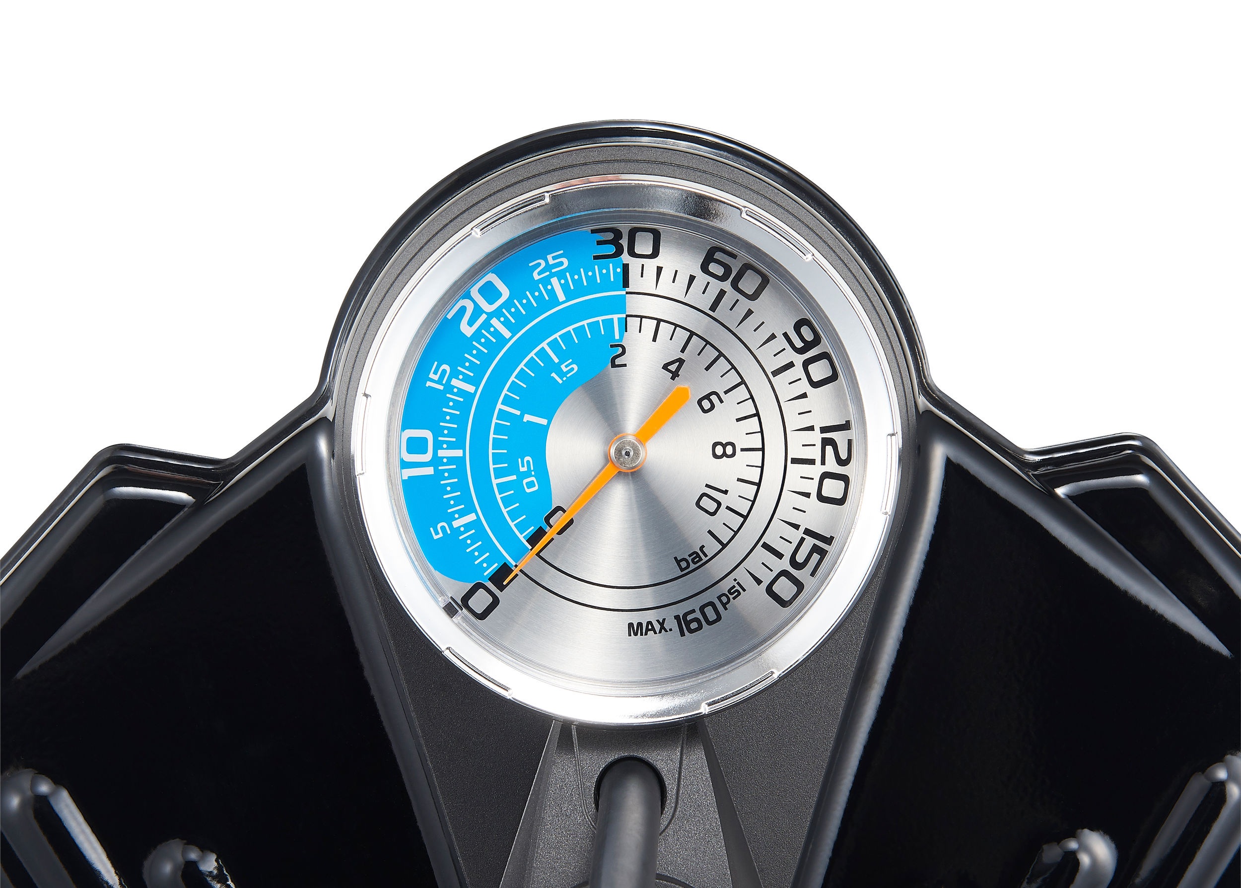 A pumpa alacsony nyomású módja 0–30 psi között működik, 0,5 psi lépésekben mutatva az értéket. A magas nyomású mód 30–160 psi között használható, és 5 psi lépésekben jelzi a nyomást.