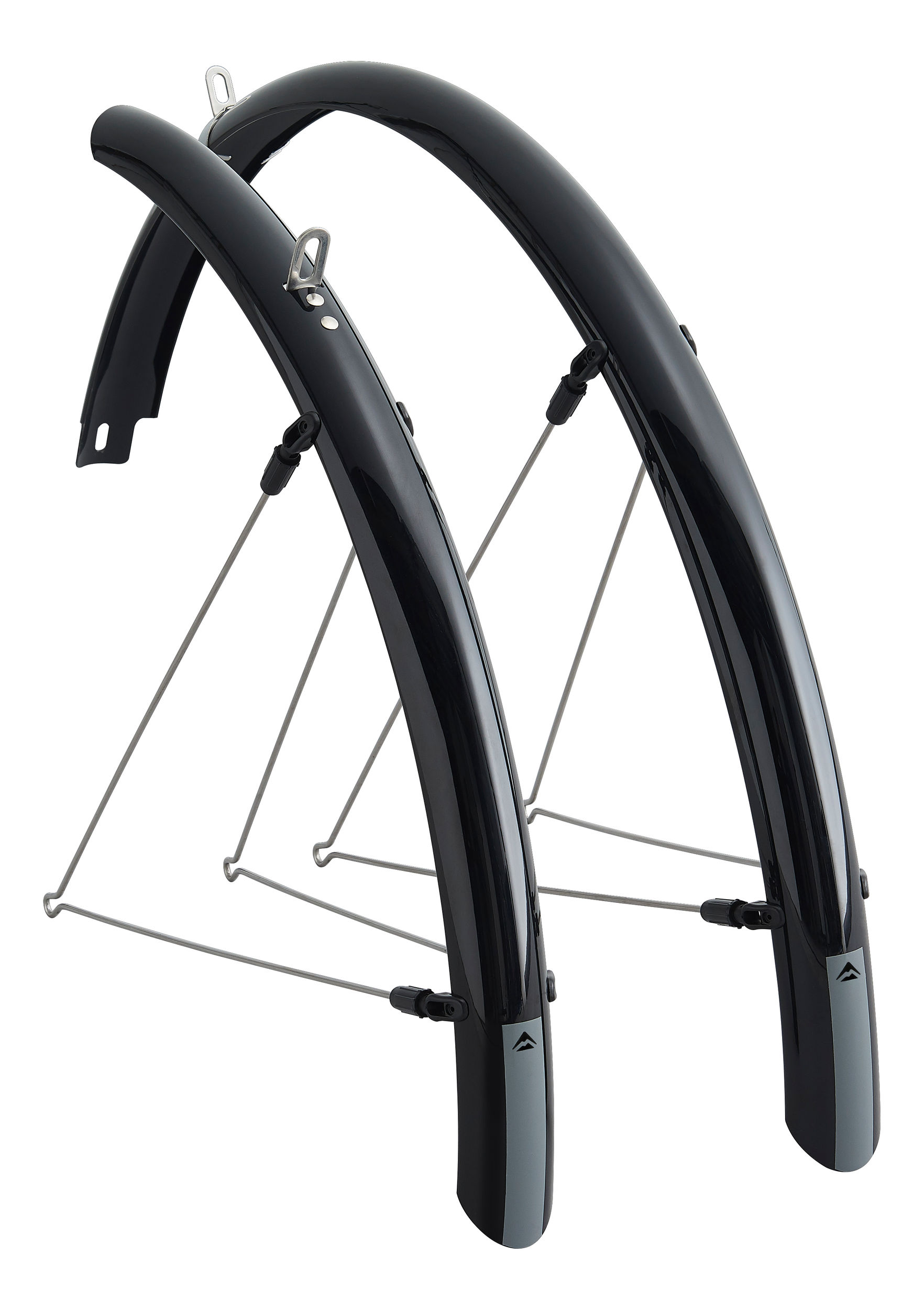A MERIDA FENDER STRIPE sárvédőket párban szállítjuk, egy első és egy hátsó sárvédővel. A sárvédők axiális vagy radiális rögzítéssel szerelhetők. Radiális rögzítés esetén a V-csövek egy oldalvágó segítségével megrövidíthetők a fűzőnyílás körül, és a vázra szerelhetők.