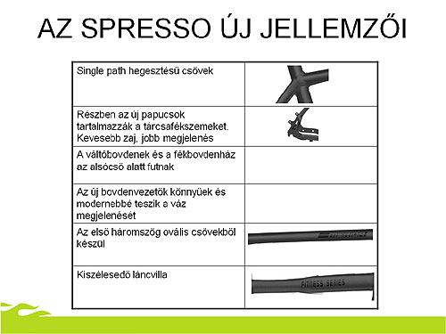 Az alsó- és felsocso ovális, a tám- és láncvilla FLX stílusú formával öleli körül a kereket. A hátsó tárcsafékszemek arrébb kerültek, ami kevesebb zajt és elegánsabb megjelenést jelent. A félintegrált bovdenvezetés és a csak tárcsafékes kialakítás letisztult külsot ad a váznak.